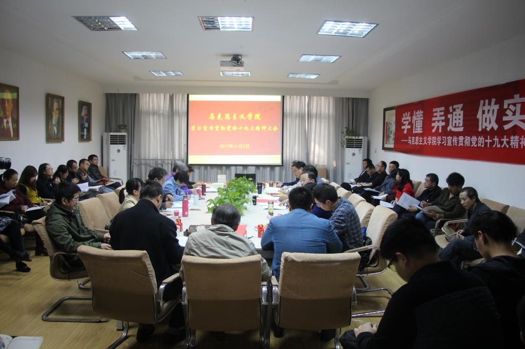 2017年11月2日下午,bat365在线中国官网登录入口在会议室召开全体党员大会,学习宣传贯彻党的十九大精神,主题为“学懂、弄通、做实党的十九大精神”。学校党委书记何光彩同志出席并讲党课,bat365在线中国官网登录入口院领导、全体教职工党员、学生党支部委员参加会议,党委宣传部部长喻芒清、副部长刘国华等同志出席。学院党委书记侯志军主持会议。
