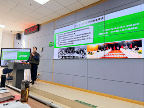 张丹丹老师以扎实的理论功底和清晰的教学思路,结合鲜活案例,深刻阐明了旗帜鲜明反对历史虚无主义的价值立场,梳理了在百年未有之大变局中,坚持立足中国、面向世界的逻辑脉络与实践路径,深刻阐释了新时代做忠诚爱国者的深远意义。督导及与会教师对张老师的课堂给予了高度评价,喻芒青教授点评其课程逻辑清晰、感染力强、学生抬头率和互动率较高,展现了bat365官网教师在理论钻研和教学创新上的活力与潜力,能够将深邃的理论讲深讲透讲活,有效调动学生的课堂参与积极性,充分激发学生的爱国主义情怀、责任与担当。
