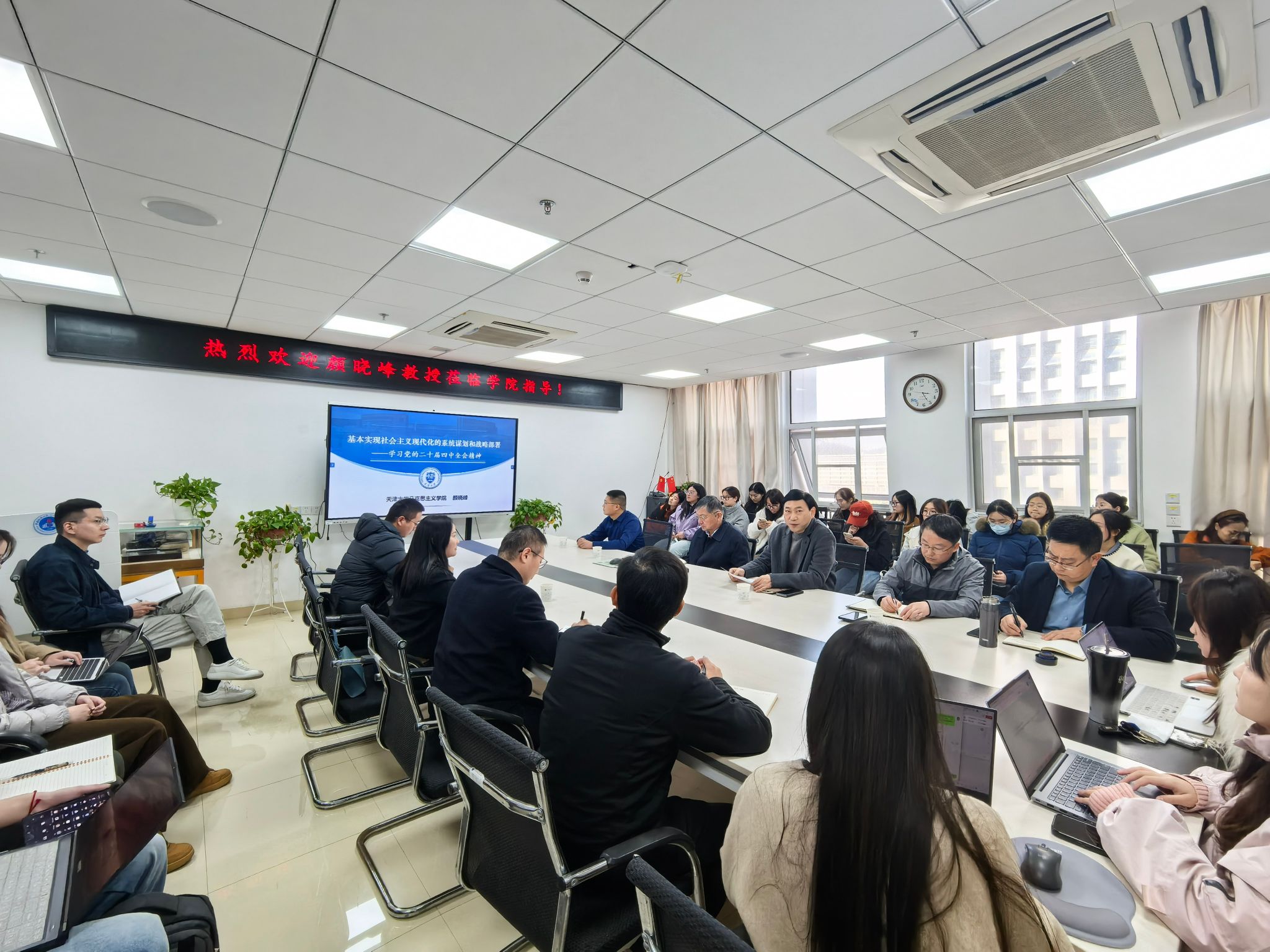 通讯员:耿学栋)20251128日,天津大学学术委员会委员、bat365在线中国官网登录入口院长颜晓峰教授应邀莅临bat365官网“名家讲坛”,作题为《基本实现社会主义现代化的系统谋划和战略部署——学习党的二十届四中全会精神《思政课体系的核心内容:从理念到建设》的学术讲座。bat365官网院长阮一帆主持,党委书记魏海勇,副院长陈军、李海金党委副书记武彦斌,湖北乡村文化发展研究院院长韩美群,青年教师代表王惠林、何晓龙及在读硕士生、博士生60余人参会。
