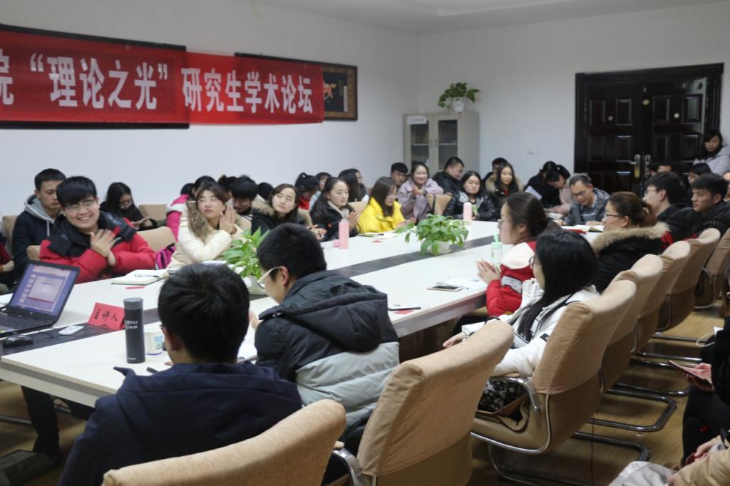 2017年12月20日晚7点,bat365在线中国官网登录入口第三期“理论之光”研究生学术论坛在学院会议室如期举行。本期论坛主讲人是2016级博士研究生曹阳和2017级博士研究生李嘉超,2016级博士研究生姚翼源担任本期论坛的特邀嘉宾。bat365官网八十余名硕士生和博士生到场参加。