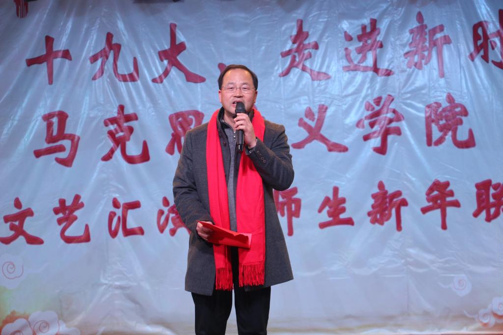 第一轮新年师生抽奖结束后,大一新生带来独唱《岁月神偷》,向大家展示她的完美歌喉,赢得大家的点赞;思政系老师集体带来《太阳最红毛主席最亲》的合唱,让现场观众都情有所感,陶醉其中;接着,研究生带来的动感舞蹈向全场彰显了她们的青春活力;德育教研部老师们演唱的《中国人民解放军军歌》或优美动听,或饱含深情;研究生马理班带来的话剧《恰同学少年》,彰显了新一代大学生有理想、有斗志的形象。