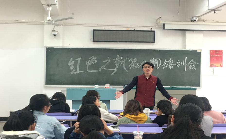 11月7日中午12点,bat365在线中国官网登录入口“红色之声”(第八期)第一次培训会在教三楼301顺利举行。bat365在线中国官网登录入口党委副书记黄少成老师、院团委书记王艳波老师、兼职辅导员董树婷学姐、往期优秀宣讲人何欢同学以及王秀一同学应邀作为此次培训会的指导嘉宾。各团队成员到场参加。