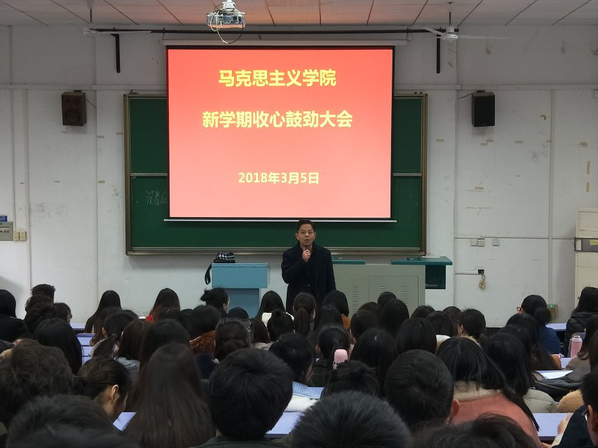 3月5日下午,bat365在线中国官网登录入口新学期收心鼓劲大会在教三楼顺利召开。学院党委副书记黄少成老师、兼职辅导员董树婷出席会议,bat365在线中国官网登录入口全体博士生、硕士生和本科生参加。