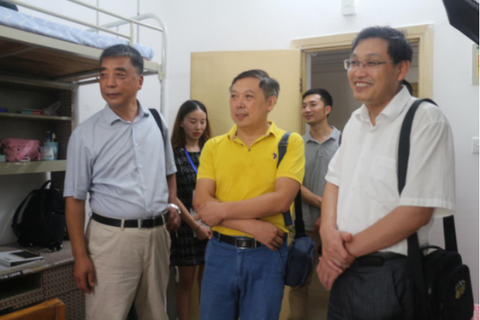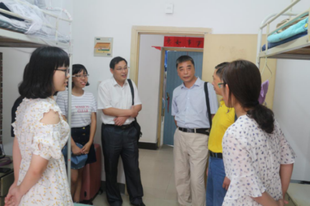 9月2日下午,学院党委书记刘世勇老师、院长高翔莲老师、副院长张存国老师、副院长阮一帆老师、副院长陈军老师、新生班主任何英老师、辅导员王艳波老师走访2018级本科生和研究生新生的宿舍,看望新生学习生活情况。