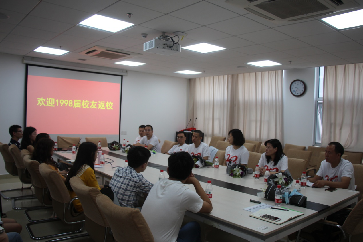院党委书记刘世勇向同学们依次介绍了参加座谈会的98届七位校友后,在校本科生代表向学长学姐们赠送鲜花表示热烈欢迎。接下来,尤敏、钟剑波等七位学长分别结合自己在大学的学习经历,以及毕业二十年的工作经历,向同学们讲述了学校以及专业带给自己的积极影响,他们提到,大学生活的光阴不仅带给了他们受用一生的知识,更为重要的是,他们在这个过程中养成了良好的学习生活习惯,也为他们日后的人生之路打下了基石,鼓励学弟学妹们要好好珍惜大学的美好时光。同时学长学姐们也对在校本科生代表们提出了“以母校为荣,以专业为傲”的希望,并指出要坚持学习、脚踏实地、学会宽容、注重反省和规划,与优秀的人为伍,多做“无用之事”、多读“无用之书”,以拓宽自己的知识面。