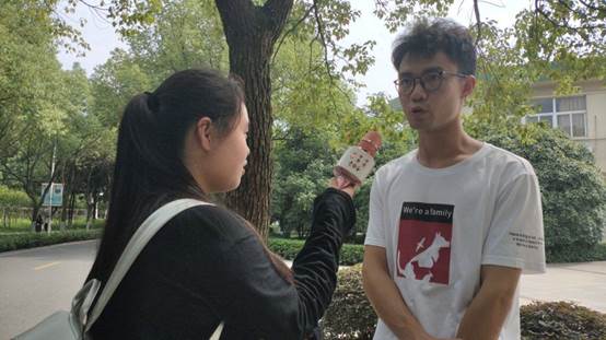 胡伟民:在为期5天的外出调研中,每天都能和大家一起奔走于不一样的校园,一起采访不一样的学生,从静谧的林荫路到几百人的大教室,一步一步地完成我们的调查计划,我感觉非常充实。在这样一个精诚团结、斗志满满的团队里,我认为我没有理由不努力。
