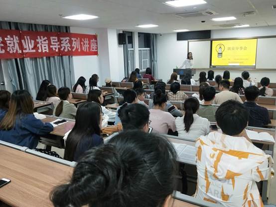 再次,郜雨宁同学从就业前的准备工作、如何获取就业信息、不同类型工作经验介绍、面试注意事项、调整就业心态五个方面进行了讲述,让同学们学到了成功就业的宝贵经验。
