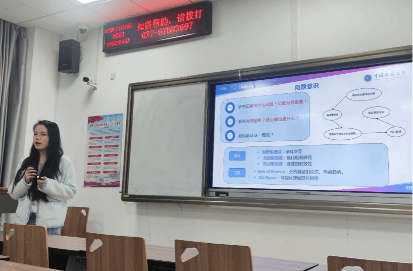 硕士研究生陈慧玲从“论文选题”“文献梳理”“论文框架”“论文呈现”“论文投递”“审稿意见回复”六个方面与大家进行分享。首先,她强调写论文要有问题意识,“研究在解决什么问题?问题为何重要?研究有何创新?”。同时要学会文献阅读与梳理。其次,陈慧玲指出英文论文的写作框架不同于中文论文,应该更加重视提供清晰的方法使读者可以复现论文,接着向大家推荐了英文论文写作的常用软件。最后,针对论文投递和审稿人意见回复方面,她结合自身经历总结了宝贵的经验。