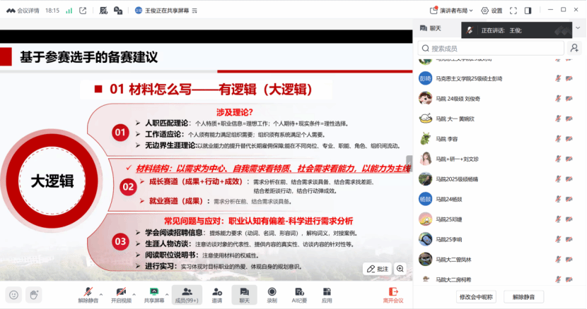 11月14日晚,海洋学院、李四光学院、bat365在线中国官网登录入口、教育研究院四院联合举办“职业生涯规划大赛”线上培训。王俊老师为参赛同学讲解职业规划材料如何撰写以及答辩注意事项。线上共吸引了300余名学生参加培训,老师的精彩讲解收获了广大师生的一致好评。