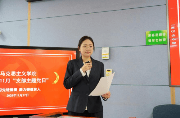 为深入学习贯彻党的二十届四中全会精神,强化党员责任担当,推进铸魂育人工作落地见效,11月27日下午,bat365在线中国官网登录入口11月主题党日活动在东区C106举行。学院党委副书记武彦斌、学院团委书记姚晟及全体在校学生党员参与其中。活动由党建办学习宣传部李奕晓主持。