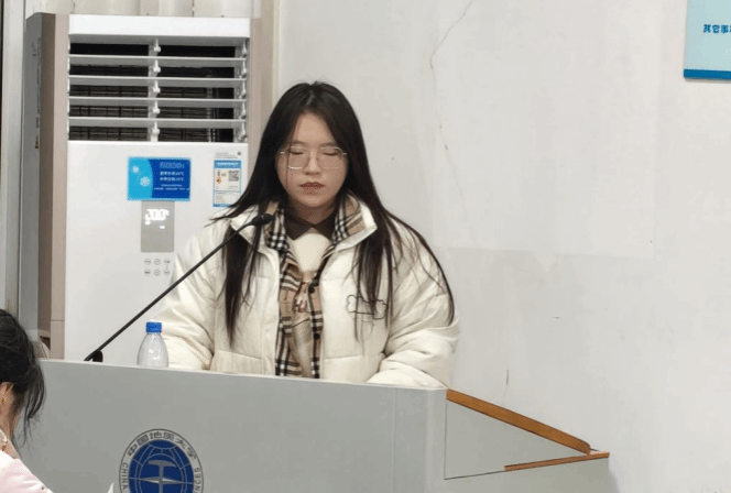 图一:院研究生会主席蒋秋香发言