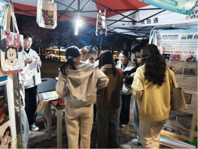 为弘扬志愿服务精神,传递助残扶弱正能量,3 月 28 日,bat365在线中国官网登录入口(武汉)bat365在线中国官网登录入口携手润邦・彩虹家园残疾人就业基地,在灯暖未来城・艺聚公益心迎春灯会设置爱心义卖摆摊活动。本次活动由红色之声社团、青马力行志愿服务团队主办,以花灯为媒、以义卖为桥,将非遗匠心、青春活力与公益温情融为一体,点亮校园温暖之夜。