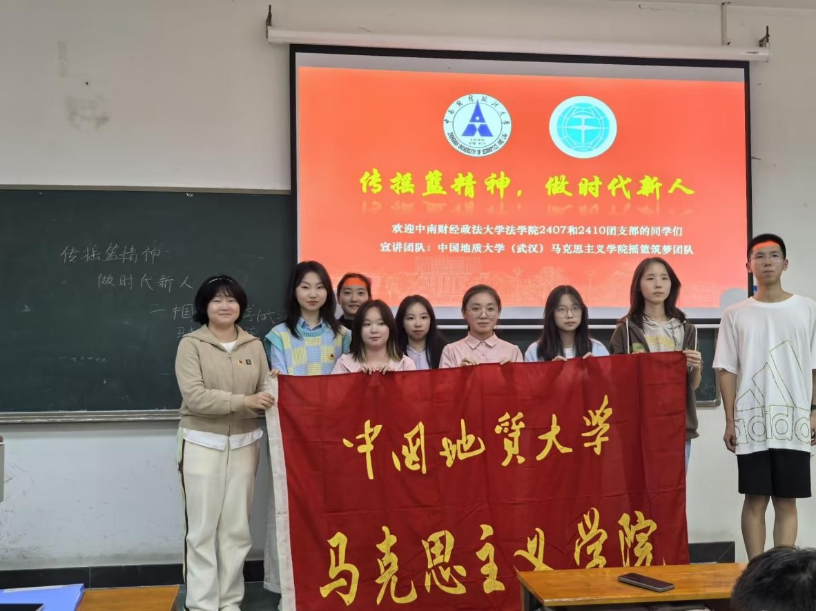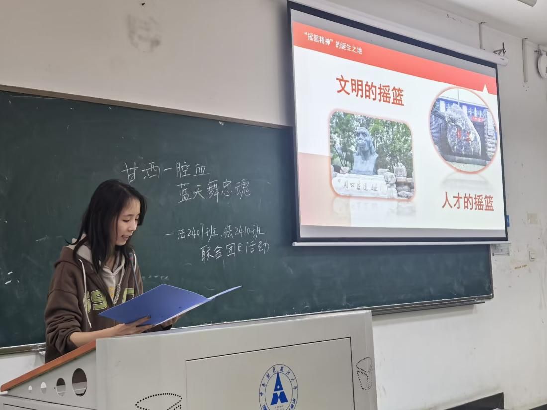 2024年11月14日16点20分,bat365在线中国官网登录入口第十五期红色之声“摇篮筑梦”团队在线下进行了主题为“生命安全主题教育”、“甘洒一腔血,蓝天舞忠魂”和“传摇篮精神,做时代新人”的线下宣讲,团队成员郭雅婕、李瑞雪、席海冰、辛汪洋、朱一婷担任主讲人,中南财经政法大学法学院2407和2410团支部参与本次活动,共计116名同学。