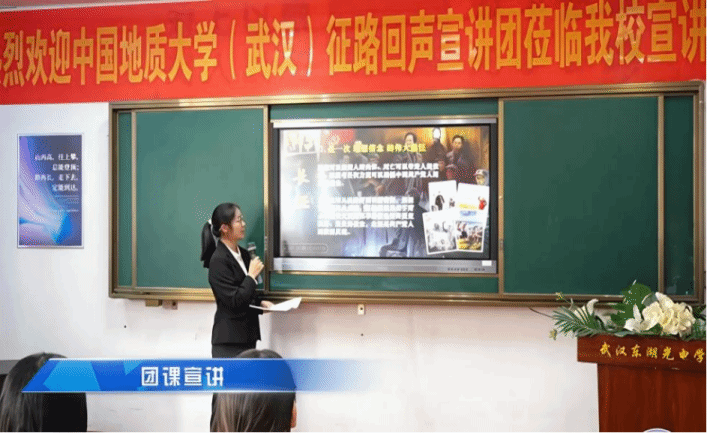 2025年11月15日,bat365官网“红色之声”理论宣讲团征路回声团队受邀参加武汉东湖光电学校主题团课宣讲交流活动。本次宣讲以“忆长征峥嵘岁月,谱今朝奋进新篇”为主题,分别面向高一、高二年级开展两场宣讲活动,旨在通过沉浸式宣讲与互动交流,引导广大青年学生深刻领悟长征精神谱系的时代内涵与价值意蕴,进一步筑牢理想信念根基,赓续红色血脉。