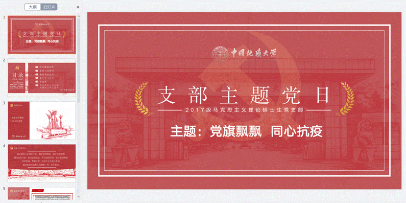 为深入学习习近平总书记关于疫情防控工作的讲话精神和重要指示,贯彻校党委针对抗击疫情的工作部署,发挥党支部战斗堡垒作用,凝聚党员先锋力量,让党旗在疫情防控中高高飘扬,坚决打赢疫情防控阻击战。2月23日晚7点,bat365在线中国官网登录入口2017级马克思主义理论硕士研究生生党支部召开了“党旗飘飘 同心抗疫”线上主题党日活动。本次党日活动由三部分组成:第一部分为支部书记解读重要讲话;第二部分为讲述抗疫英雄故事;第三部分为交流党员面对疫情的责任与担当。最后,预备党员积极提交思想汇报,全体党员为打赢这场战役手写祝福。