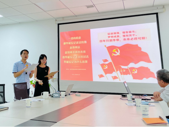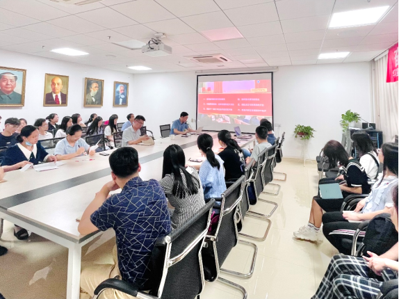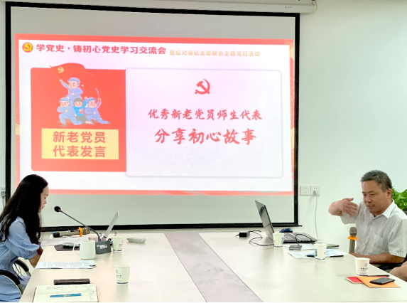 (通讯员:王舒晨、张东凯、李蔚然)奋斗百年路,启航新征程。在庆祝中国共产党成立100周年这个光荣的日子,德育教研部党支部与2020级马克思主义理论硕士生党支部于2021年7月1日下午14:30在东区教学综合楼B1013开展“学党史·铸初心”党史学习交流会暨结对领航支部联合主题党日活动。此次活动共历时三小时,由支部书记李蔚然老师和张东凯同学共同主持,师生党支部全体同志参与了本次交流活动,院长阮一帆为在场党员开展党史学习教育专题辅导。
