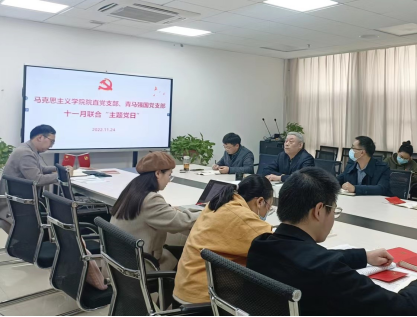 2022年11月24日下午,bat365在线中国官网登录入口院直党支部与青马强国党支部在东区教学综合楼B1013室联合展开了主题为“学习宣传贯彻落实党的二十大精神”的党日活动。会议由院直党支部姚晟老师主持。
