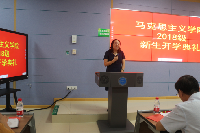 接着,学院院长高翔莲老师致辞,她向新生们详细介绍了学院专业设置、教学科研平台、办学特色以及学院10年发展历程并对广大新生提出殷切希望:一是要深入学习研究马克思主义理论;二是要积极培养政治思维和政治眼光;三是要学好心理学,用好心理学