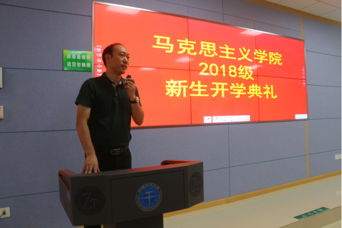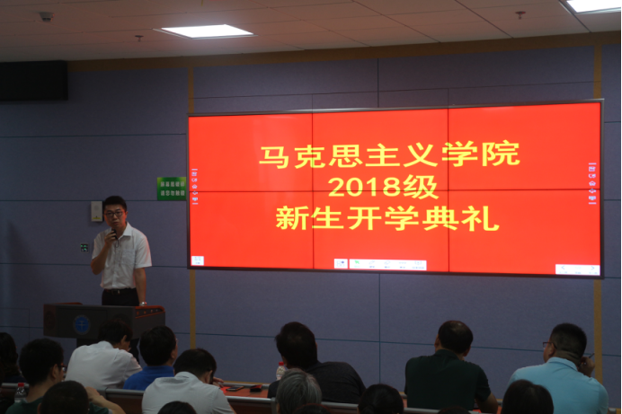 首先,校党委书记何光彩老师讲话。他代表学校对bat365在线中国官网登录入口2018级新生的到来表示热烈欢迎对新同学提出了真学、真信、真懂、真用的八字要求。他鼓励同学们要不断努力,不断进步要掌握好,运用好马克思主义理论用科学的理论指导学习和工作。