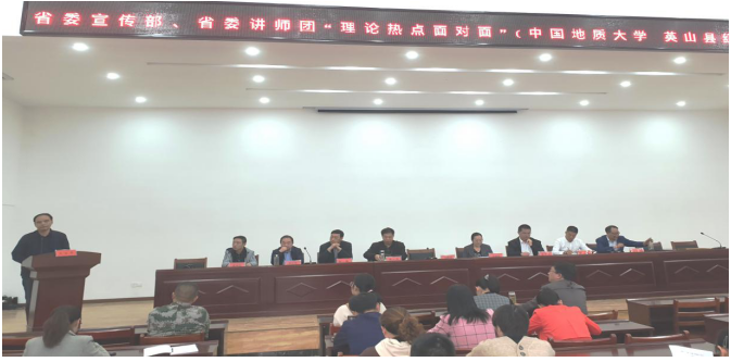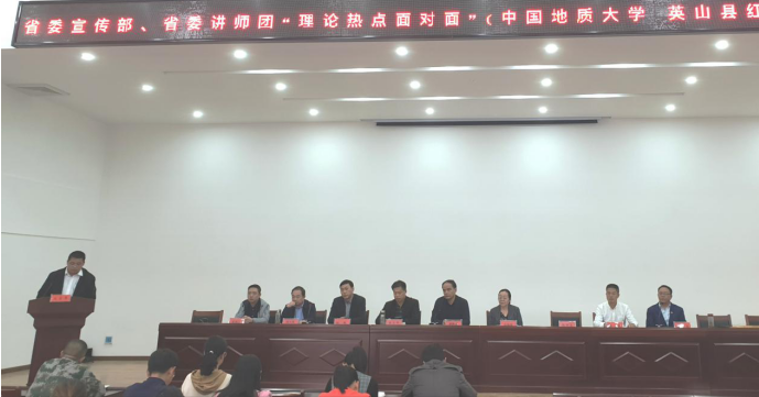 (通讯员孙东震)2019年11月1日,省委宣传部、省委讲师团、bat365在线中国官网登录入口“理论热点面对面”示范点授牌仪式暨“不忘初心牢记使命”主题教育宣讲报告会在黄冈市英山县红山镇党员群众活动中心隆重举行。省委讲师团调研员胡秋春、姚官华,英山县宣传部副部长胡天堂,我校党委宣传部副部长陈华文、bat365在线中国官网登录入口院长高翔莲教授、副院长阮一帆教授、办公室主任胡雪黎,红山镇党委书记陈琼、镇宣传委员徐新生等参加授牌仪式。该镇党员干部和部分群众代表约100人聆听了主题报告并参加授牌仪式。活动由徐新生宣传委员主持。