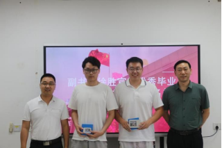 院长阮一帆代表学院向毕业生赠送纪念品