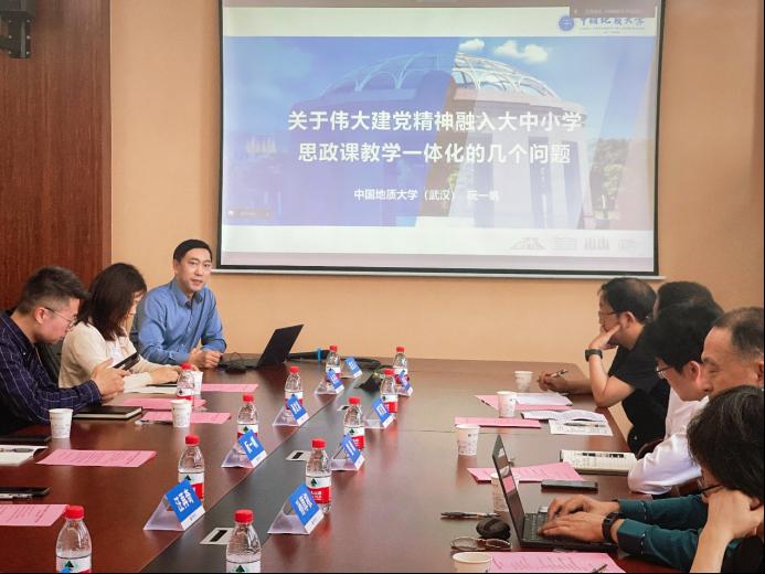 武汉工商学院、武汉生物工程学院、五峰土家族自治县教育局、五峰县高级中学、五峰县实验初中、bat365在线中国官网登录入口(武汉)附属学校、武汉市卓刀泉小学等成员单位相关负责人介绍了各地各校开展大中小学思政课一体化建设的经验,并围绕打造一批理论与实践相结合的创新性研究型工作平台,努力形成一套工作机制、孵化一批品牌活动、打造一批示范“金课”、产出一批优质课程资源、形成一批高水平教学研究成果、提供一批高质量智库咨政报告、培养一支优秀师资队伍等方面进行了深入的交流和探讨。与会代表纷纷表示,将在bat365在线中国官网登录入口(武汉)的带领下全力推进“红绿蓝”思政课一体化共同体建设,加强校校合作,共同探索和建立共享机制深化思政课程改革,形成具有地大特色的可借鉴、可推广的工作模式和体制机制。