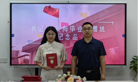 党委书记汪再奇、院长阮一帆代表学院向毕业生赠送纪念品