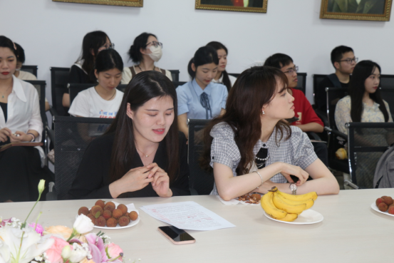 学院老师与毕业生亲切交流。毕业生们积极发言,回顾学习生涯,向老师们和同学们表示感谢、给予美好祝愿,并积极向学院提出宝贵建议。研究生毕业生代表刘丹说:“感谢母校给予每一位地大人广阔的发展平台,全心全意地助力我们成长成才,感谢母校给予2023届毕业生的关怀与帮助,以爱和温暖促进我们全面发展。”本科生代表左睿同学祝愿各位老师身体健康,桃李芬芳,同时,也祝愿每一位同学都能够不负初心、不负使命,做实践的、革命的理想主义者,真正成长为可堪大任的时代新人。