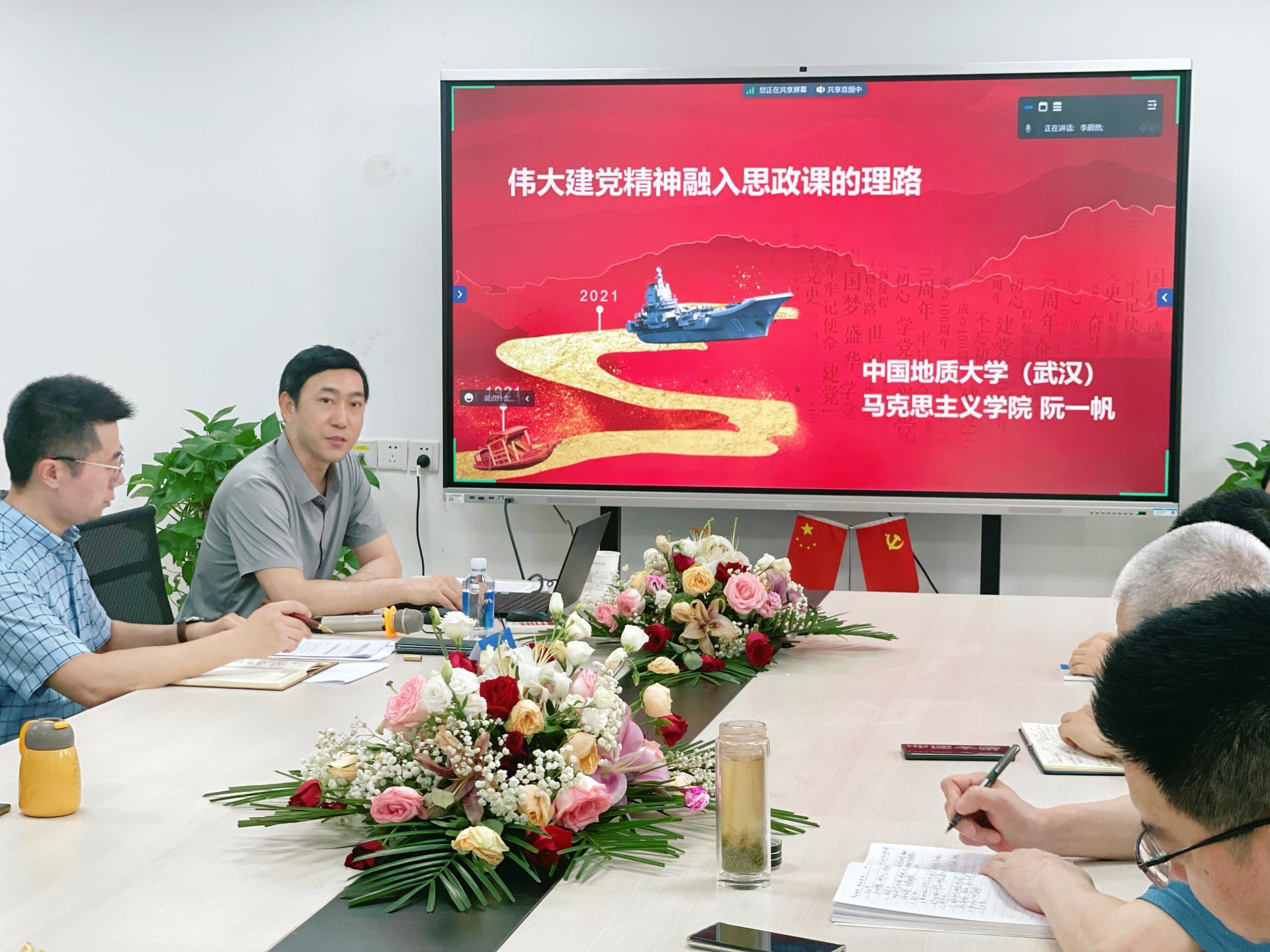 阮一帆院长围绕“伟大建党精神融入思政课的理路”进行深入讲解。他系统阐述了伟大建党精神的深刻内涵,指出伟大建党精神是中国共产党精神谱系的源头,贯穿于中国共产党百年发展全历程,要充分挖掘伟大建党精神的育人价值,将伟大建党精神有效融入思政课,这是充分实现伟大建党精神思想政治教育价值的必然要求。这就必须提高学校的政治站位,更新思政课教师的教育理念,充分发挥思政课教师的主导作用;同时,遵循思想政治教育的一般规律,按照人的思想品德形成发展的完整过程,从“知情意信行”五个方面帮助学生把对伟大建党精神的认知转化为认同再转化为实际行为。他还对大中小学各学段关于推进伟大建党精神教育的备课主题进行了相应推荐,同时就大学里的各门思政课如何根据承载的不同任务和内容挖掘伟大建党精神的丰富内涵,从不同角度实现伟大建党精神的有机融入,开展有针对性的教学设计进行了重点阐述。最后,强调要利用好“大思政课”理念方法,在社会大课堂中融入伟大建党精神的宣传教育,在全社会营造浓厚的红色文化氛围,于潜移默化中实现伟大建党精神入脑入心。