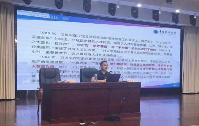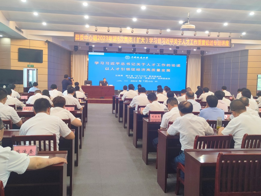 汪再奇书记以《学习习近平总书记关于人才工作的论述——以人才引领促经济高质量发展》为题,从形成背景、内容与特征以及历史与时代贯通三个维度,系统地阐述了习近平总书记关于人才工作重要论述,重点强调要用理论指导实践,善于总结人才观的历史经验,科学把握人才观的时代要求。