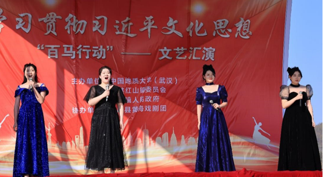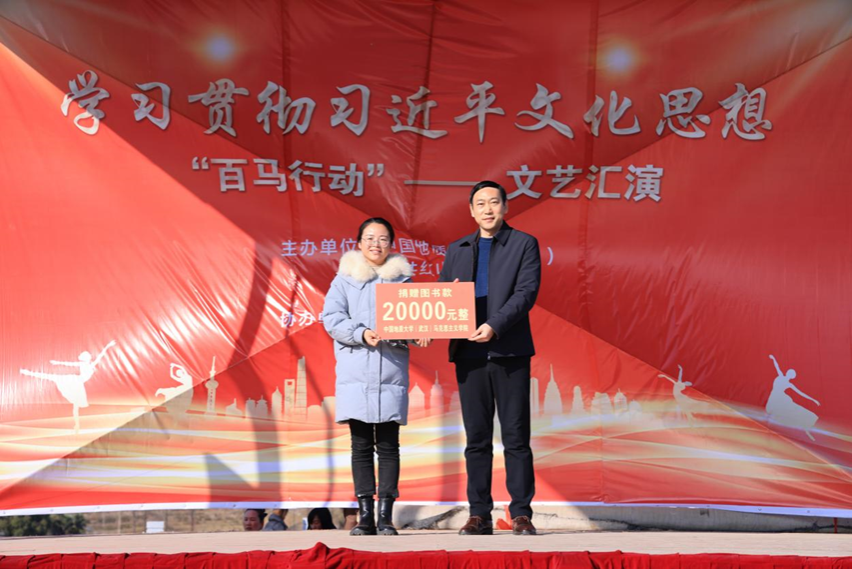 1月5日下午,学习贯彻习近平文化思想“百马行动”文艺汇演在红山镇乌云山村举行。由乌云山村村民带来精彩的开场舞表演,拉开本次文艺汇演的帷幕。在热闹的开场舞之后,由bat365在线中国官网登录入口(武汉)bat365在线中国官网登录入口院长阮一帆教授代表我校进行图书款捐赠活动。