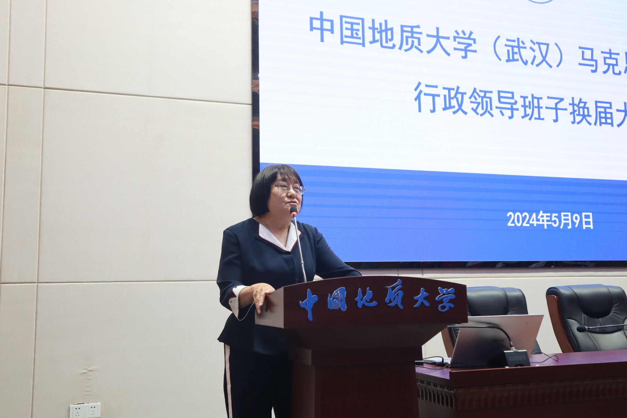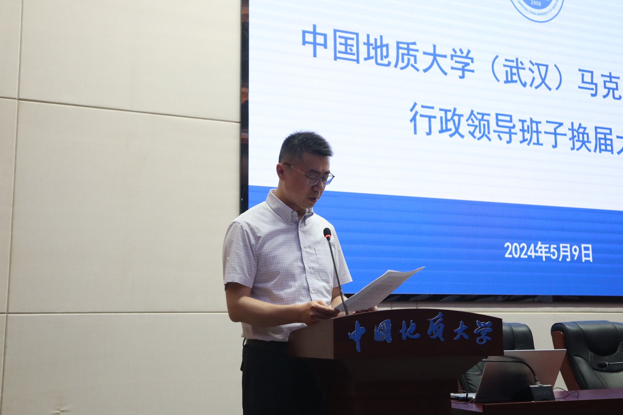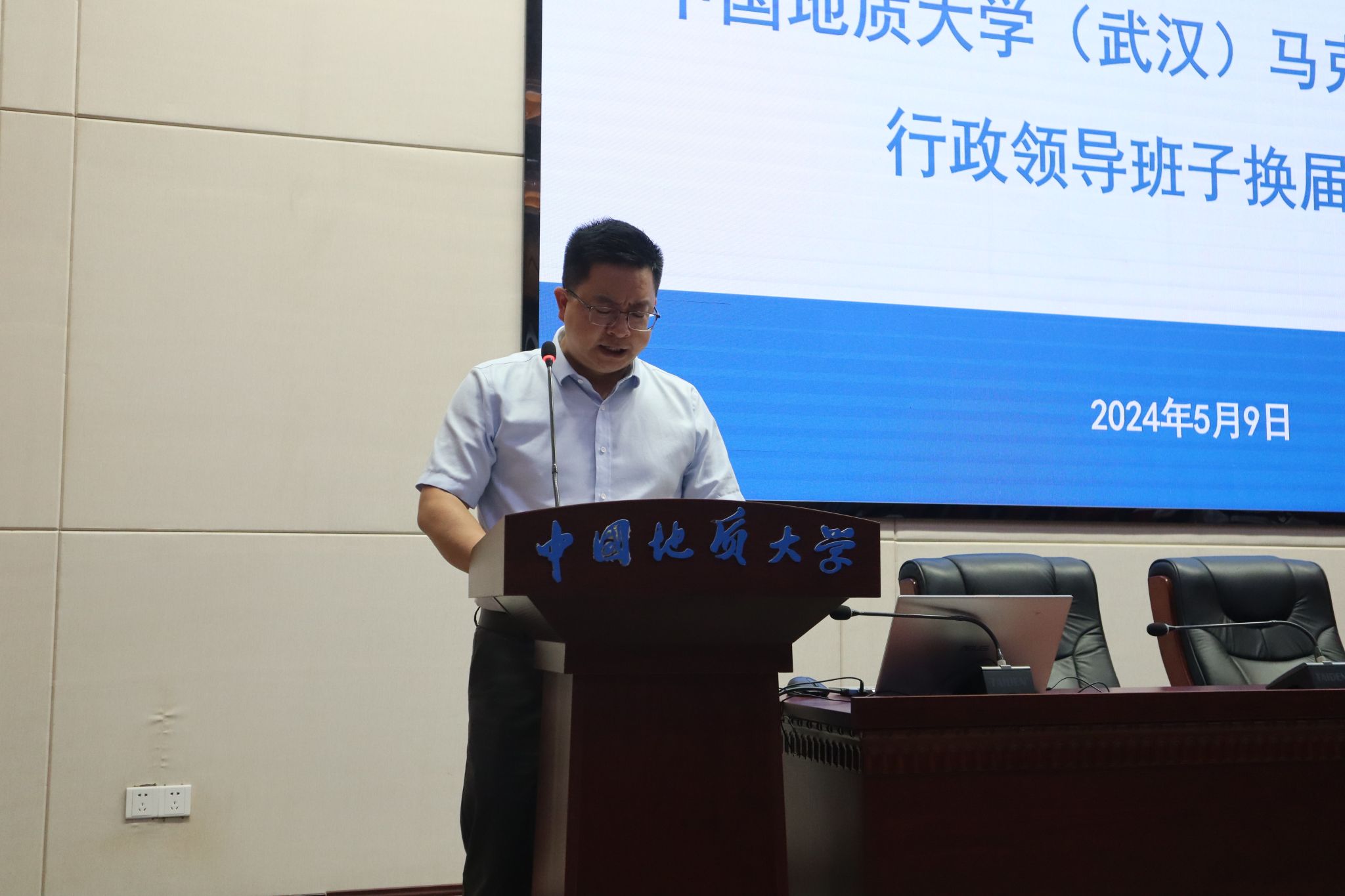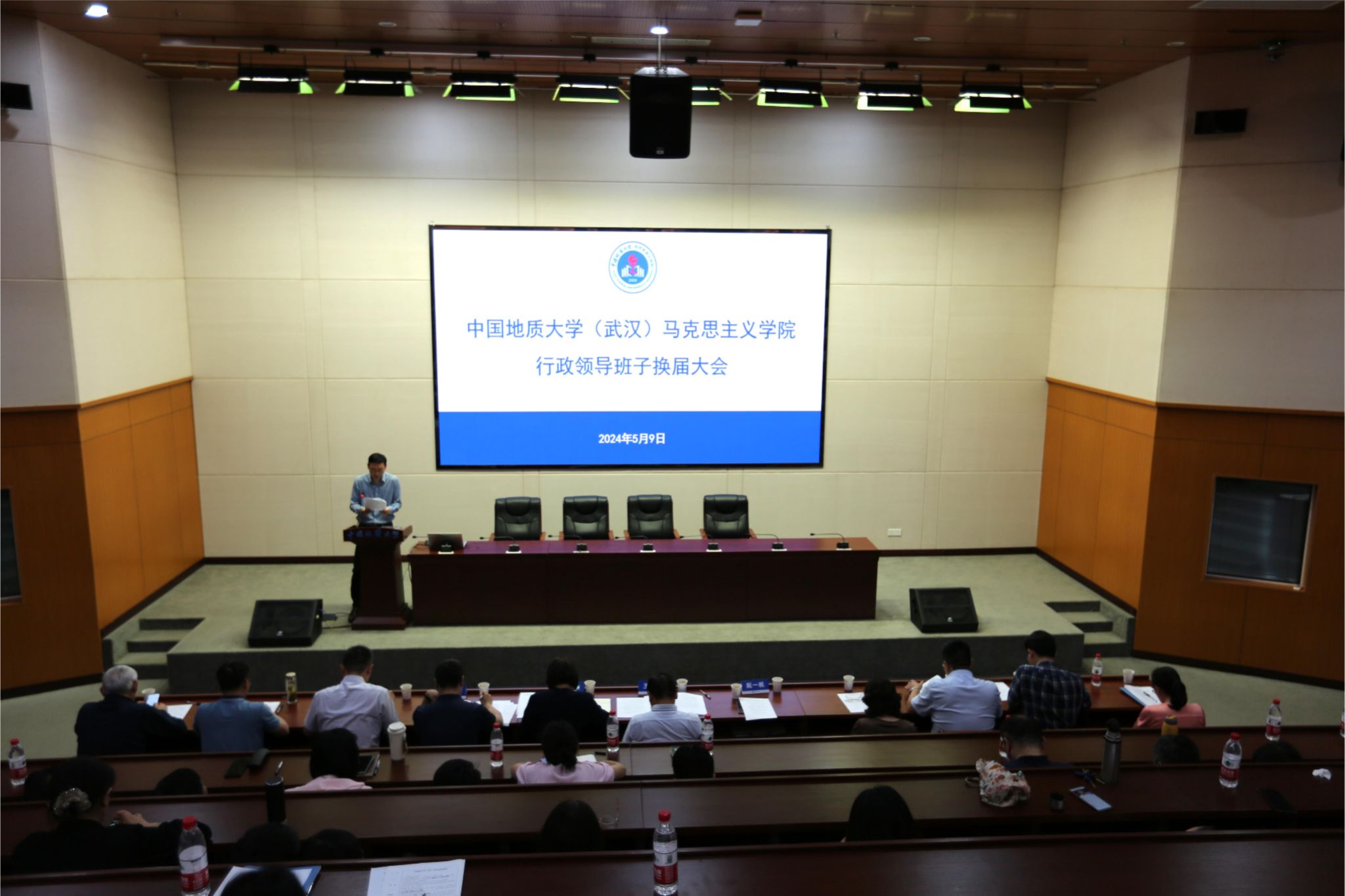 5月9日,bat365在线中国官网登录入口行政领导班子换届大会在东区教学综合楼A0116报告厅举行。党委常委、副书记王林清,党委常委、组织部部长陈文武及学院全体教职工、学生代表参加大会。