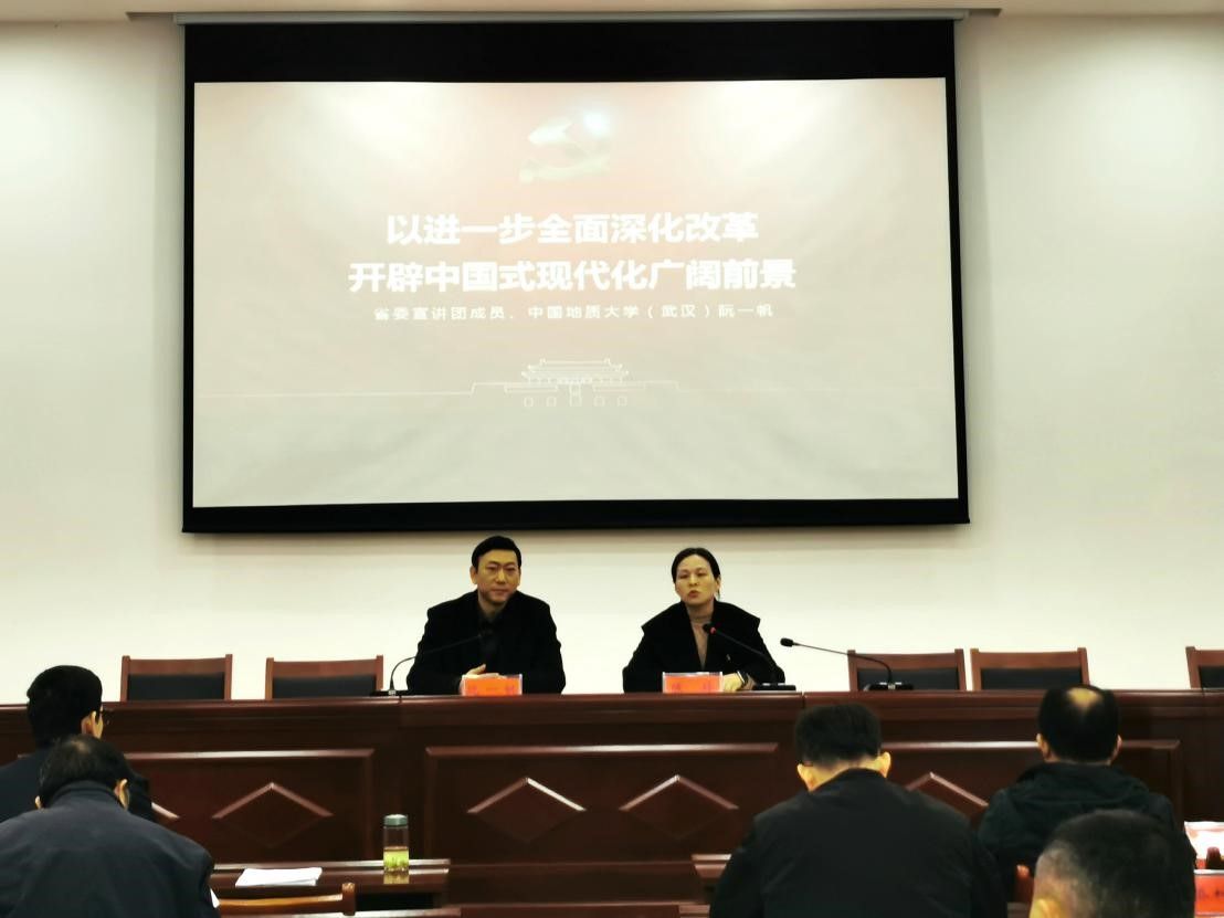 在英山县融媒体中心,武彦斌副教授作了“学深悟透二十届三中全会精神,夯实全面深化改革的思想基础”的专题宣讲,以怎么看、怎么干、怎么抓为引入,结合国内外典型事例,从理论层面和实践层面深入剖析了历史大变局中全面深化改革的必要性和紧迫性。同时,他还就新时代如何做好媒体工作、如何提高党的新闻舆论传播力、凸显主流价值等问题同与会人员进行了深入交流和探讨。宣讲内容丰富、内涵深刻,深入浅出、通俗易懂,既有理论高度,又有实践深度,对现场听众完整准确、全面领会全会精神提供了有力指引。