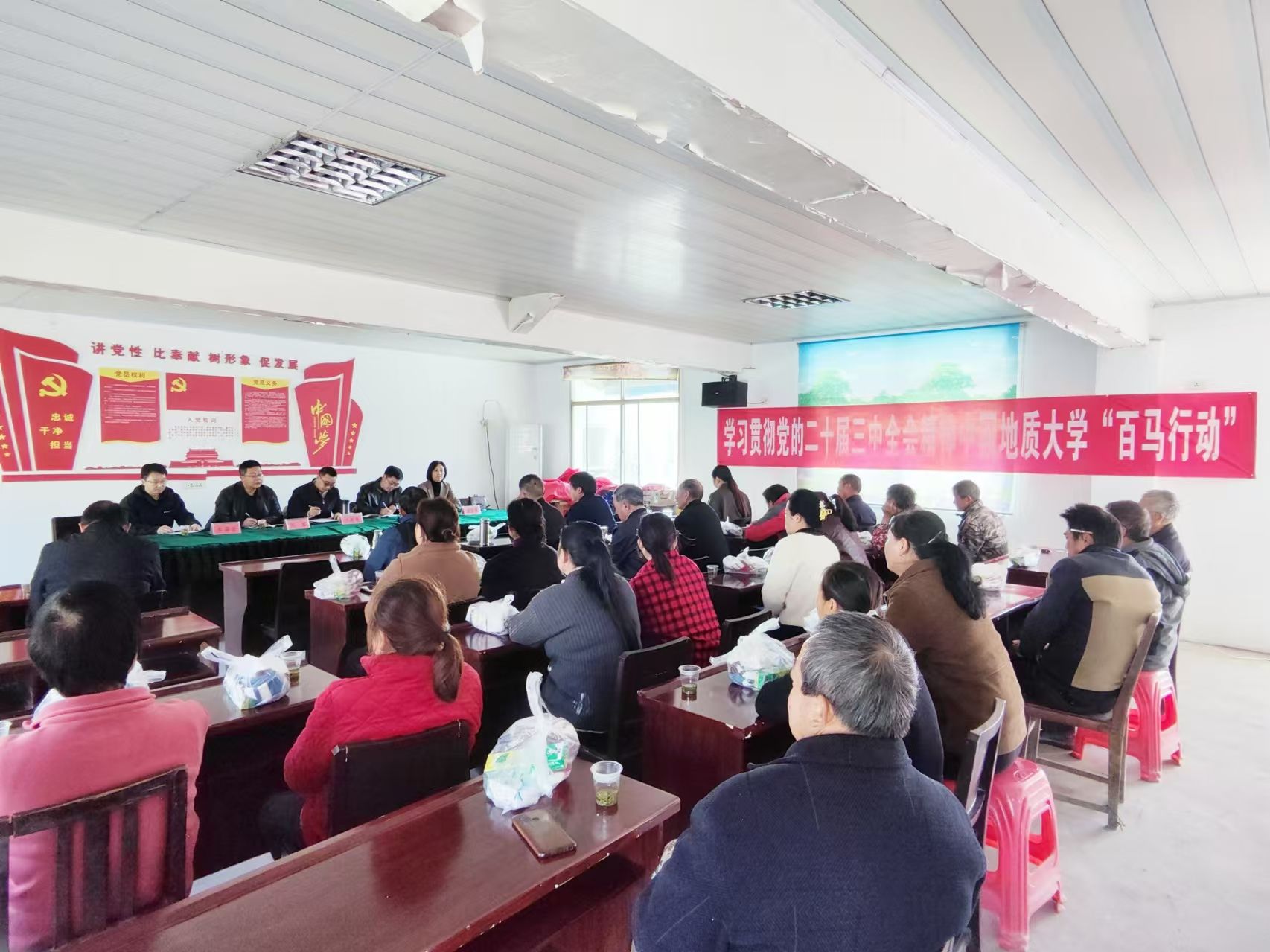 在英山县红山镇东汤河村党员群众服务中心,吴仁喜副部长、汪再奇书记、陈军副院长、李海金副院长、胡雪黎主任等同村两委委员和党员群众代表开展面对面交流,推动党的创新理论在基层落地生根。宣讲队专家成员采取“拉家常”宣讲等群众喜闻乐见的形式,用通俗易懂的语言宣讲党的二十届三中全会精神,把全会精神及时准确地传达到基层。同时,结合村民的生产生活实际,双方就如何利用地热等当地资源优势推进乡村全面振兴、促进集体收入持续增长、强化农业科技支撑等群众关心的热点难点问题展开了热烈讨论。在互动讨论中,宣讲队进一步摸透村情、熟透民情,并结合村庄实际和学校特色,因地制宜,对村民提出的具体问题“对症开方”,助力地方经济社会高质量发展。现场气氛热烈、掌声雷动。