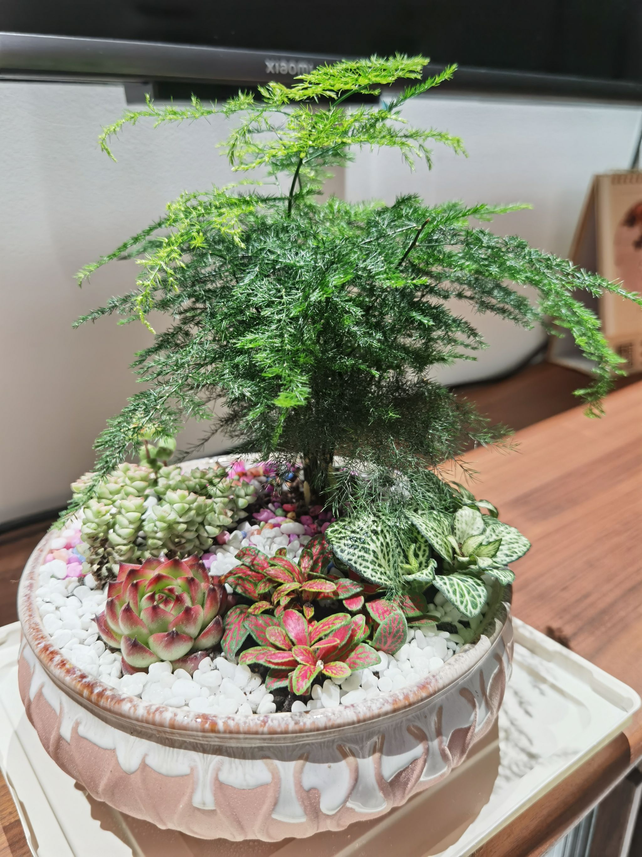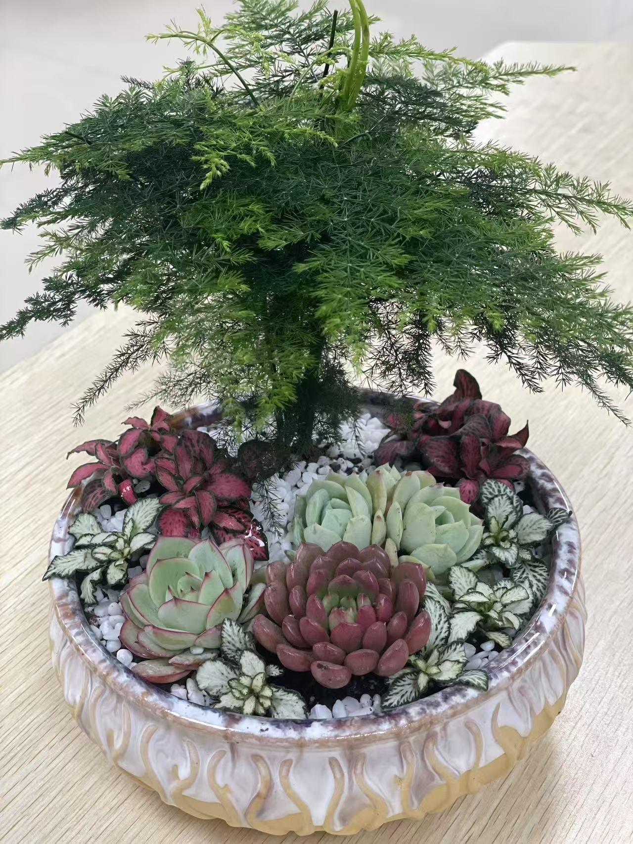 活动当天,学院特别邀请了专业园艺师为女教职工们讲解微景观艺术知识。园艺师从微景观的基本组成、形式设计、制作搭配技巧以及多肉植物的护理常识等方面进行了详细讲解,为大家打开了微景观艺术的大门。在园艺师的指导下,女教职工们纷纷动手制作属于自己的微景观作品。大家充分发挥创意,将文竹、多肉、蕨类植物和陶石等材料巧妙搭配,制作出姿态各异、独具匠心的微景观作品。