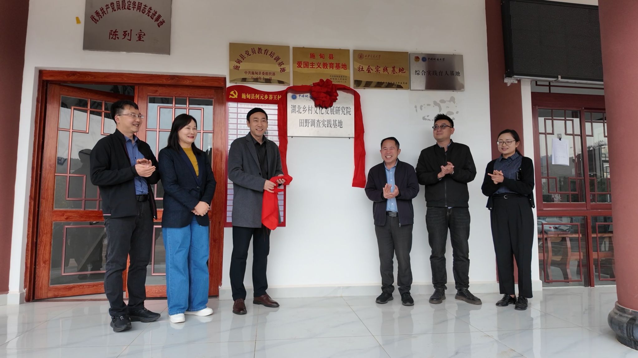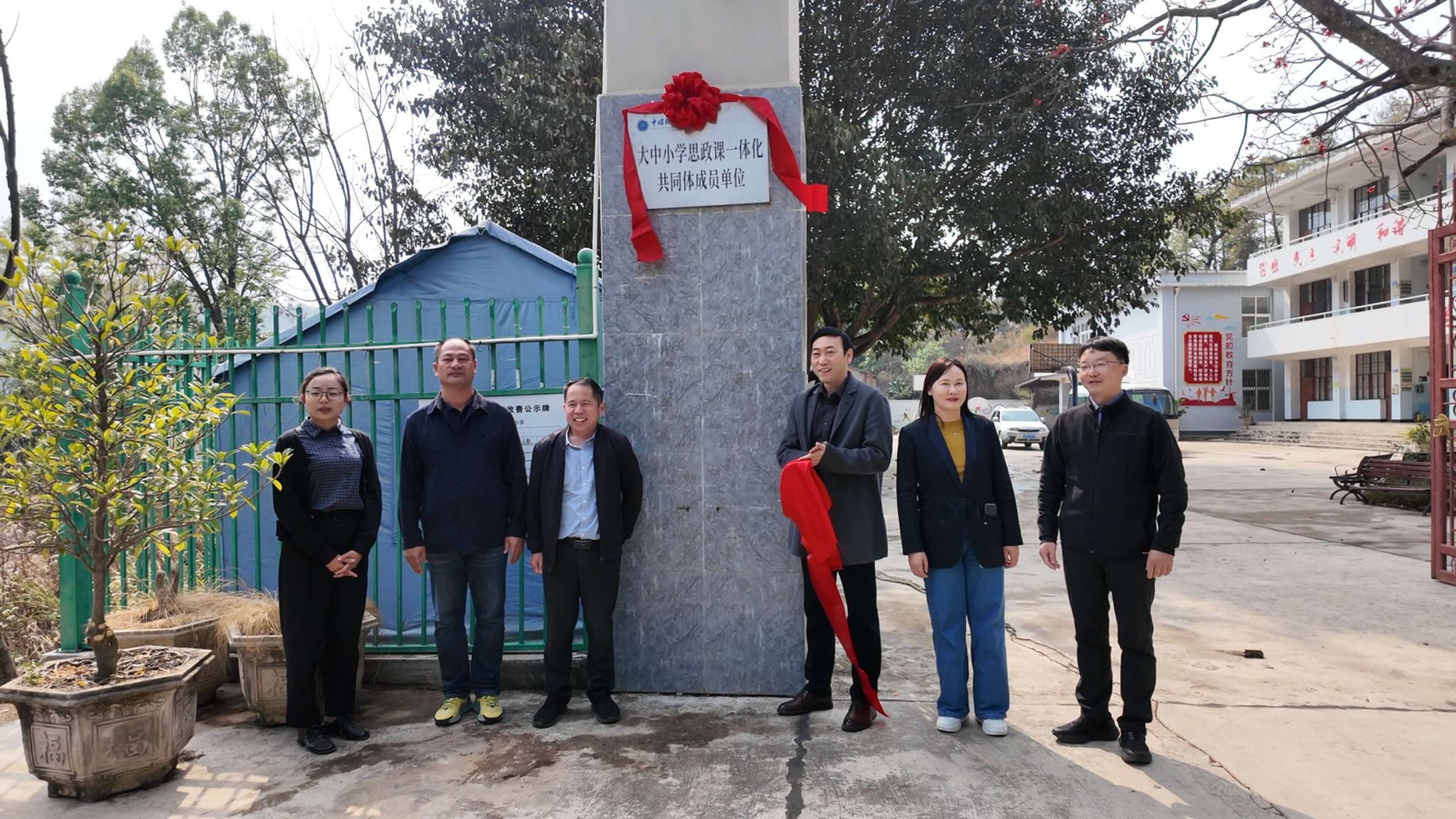 调研期间,bat365官网在何元乡莽王村揭牌设立“湖北乡村文化发展研究院田野调查实践基地”。韩美群教授作为基地负责人表示,该基地将聚焦地质文化发展与乡村治理创新,为学院师生开展国土安全教育、乡村文化研究提供长期观测点。在何元小学举行的“大中小学思政课一体化共同体成员单位”授牌仪式上,阮一帆院长强调,学院将持续输送优质思政教育资源,通过云端课程共享、师资联合培训等方式,构建具有乡土特色的思政育人体系。