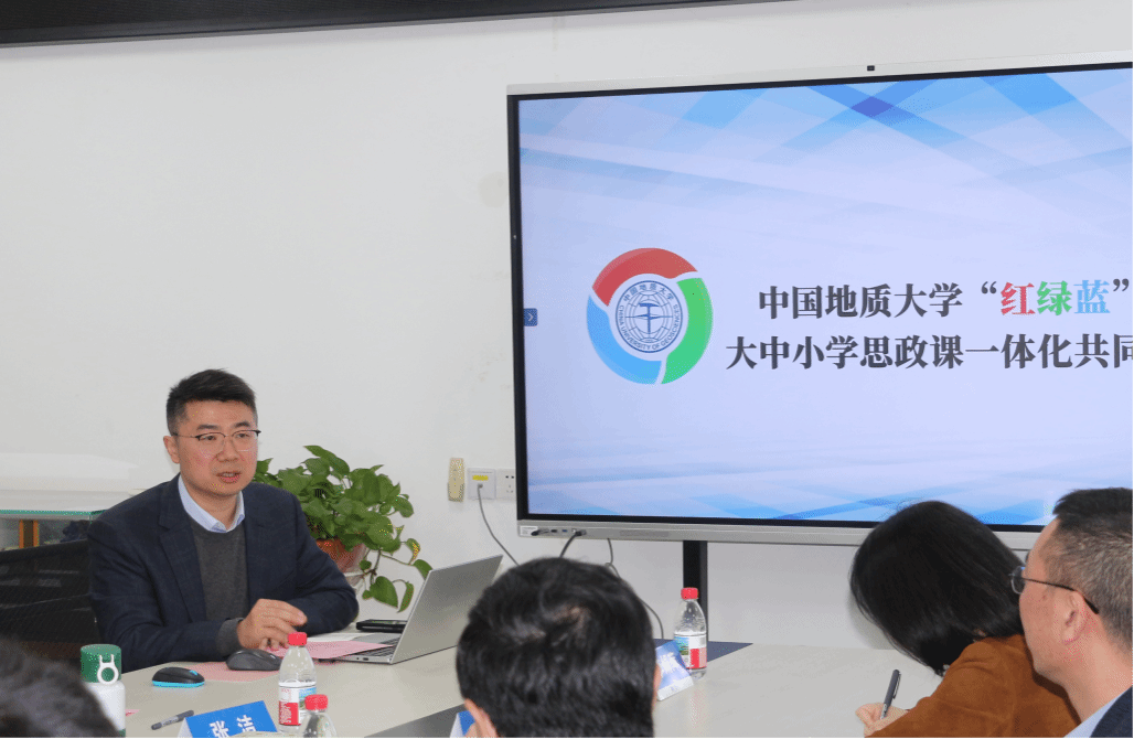 孙文沛作“bat365在线中国官网登录入口‘红绿蓝’大中小学思政课一体化共同体”报告。他从“建党精神”“生态文明”“国土安全”三个版块介绍了“红绿蓝”大中小学思政课一体化共同体的建设思路与建设方案,深入剖析各版块在不同学段的侧重点与实施方式,并分享共同体已取得的成果与行之有效的经验策略。