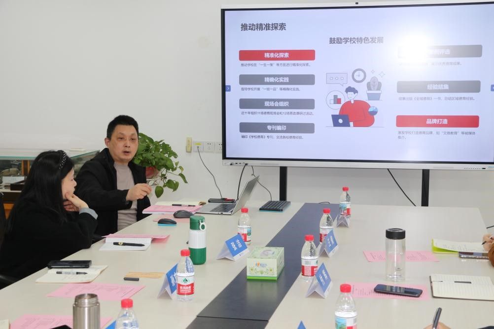 李娟萍作“思政教育:点亮学生的精神灯塔”专题报告。她从筑牢育人根基、深耕育人土壤、涵育精神品格、凝聚育人合力、激励成长自觉五个方面详细介绍了“成成教育”特色德育品牌,并分享了“党建+德育”双轮驱动、“学科+节日”“学科+思政”“学科+生活”育人模式、“一步一景皆育人”思政文化场域等德育案例。