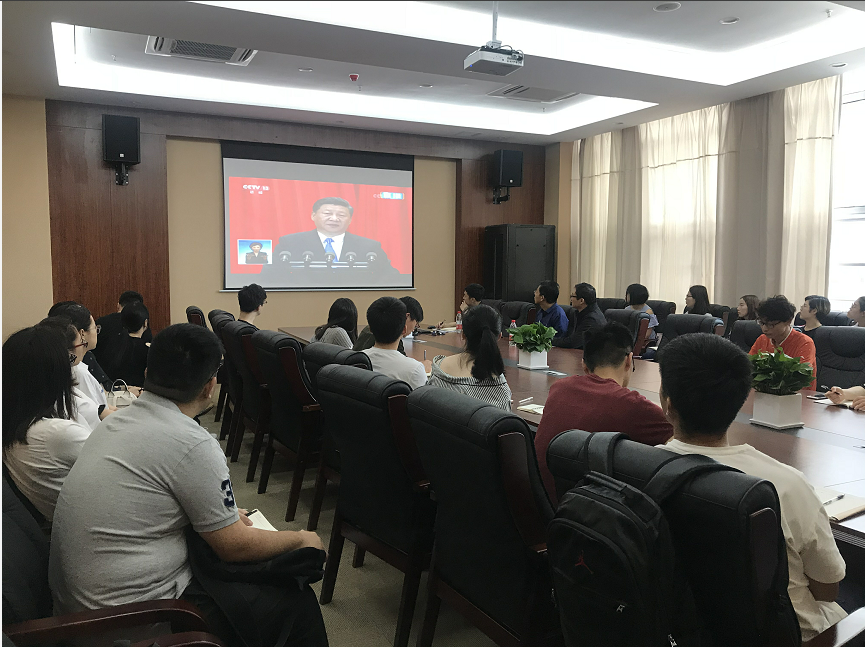 2018年5月4日上午10:00,bat365在线中国官网登录入口组织师生在教学综合大楼0702会议室观看纪念马克思诞辰200周年大会直播,学习习近平总书记发表的重要讲话,会后,师生热议总书记的讲话精神,并分享学习心得。