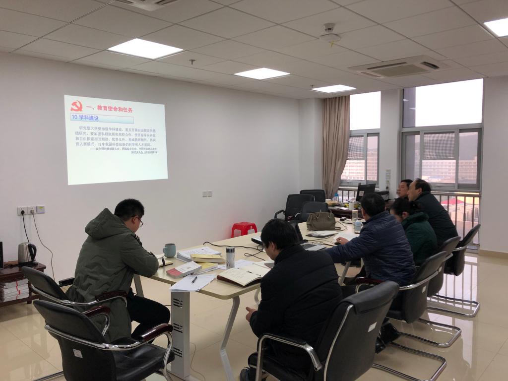 学院党委书记刘世勇就习近平总书记关于高等教育重要论述作了主题发言。学习了习近平总书记关于教育使命和任务、思想政治工作、人才培养、教书育人和青年成才等系列重要论述和讲话精神。他强调,班子成员要深入学习总书记关于高等教育的一系列重要讲话,学习贯彻全国教育大会精神,落实立德树人根本任务。同时,要求学院班子成员要做到“信念过硬、政治过硬 、责任过硬 、能力过硬、作风过硬”,增强“学习本领、政治领导本领、改革创新本领、科学发展本领、依法执政本领、群众工作本领、狠抓落实本领、驾驭风险本领”等八大本领,全面加强党的建设,全面贯彻党的教育方针,扎实推进学校双一流建设,切实推进学科建设、人才培养和学院发展。