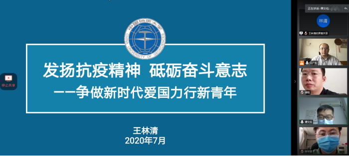 王林清副书记以《发扬抗疫精神,砥砺奋斗意志--争做新时代爱国力行新青年》为题,围绕领袖奋斗史、地大发展史以及全民战疫行三个部分,从不同角度向同学们讲述了结合当今发展实际,新时代青年学生如何在实现理想抱负中彰显爱国主义精神。