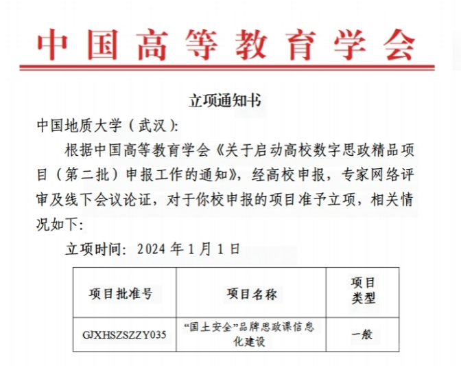 (通讯员:孙文沛、刘丹)2023年12月,我校《国土安全--历史上的边疆治理与国家统一虚拟仿真实验》入选湖北省一流课程,名列我校虚拟仿真实验类课程第一名,“‘国土安全’品牌思政课信息化建设”项目获批高校数字思政精品项目立项(第二批)。