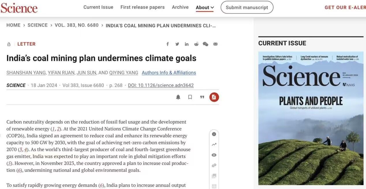 化石燃料是迄今为止造成全球气候变化的最主要原因,占全球温室气体排放的75%以上,占所有二氧化碳排放的近90%。随着温室气体浓度升高,全球气候恢复力和可持续发展正面临越来越严峻挑战。面对日益严峻的全球气候变化形势,国际社会在《联合国气候变化框架公约》等框架下已经采取了积极行动,但目前仍存在能源供给不足与经济社会发展需求的矛盾。文章指出,印度地下采煤不仅威胁全球气候目标的实现、粮食安全,还破坏生态环境,比如造成地表沉降、破坏水资源、污染生态系统等。