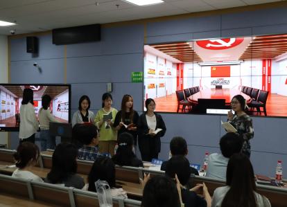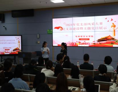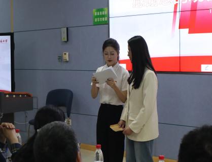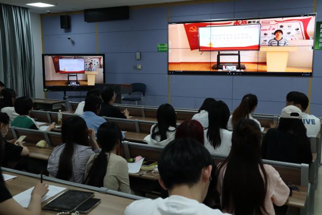 “主题党日”风采展示。在这个环节,各支部展现了他们精心策划的“主题党日”活动。活动形式丰富多样,包括同上一堂思政课、情景剧等。在场师生一起感受党百年征程的辉煌。聆听红色故事,品味先辈精神,感受时代脉动,现场掌声雷动,反响热烈。