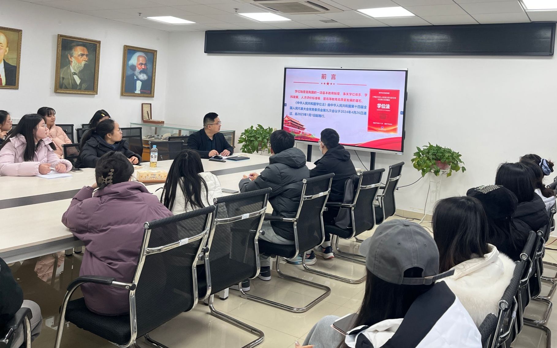 为深入贯彻落实《中华人民共和国学位法》(以下简称《学位法》)暨导师专题培训的工作要求,切实提升学生培养质量,规范学位授予工作,bat365官网于2025年1月6日-15日分组开展了《学位法》专题学习活动。本次学习活动采用线上线下结合的形式进行。学院领导班子成员、30余名研究生导师和全体研究生参加了专题学习,副院长陈军主持和领学。
