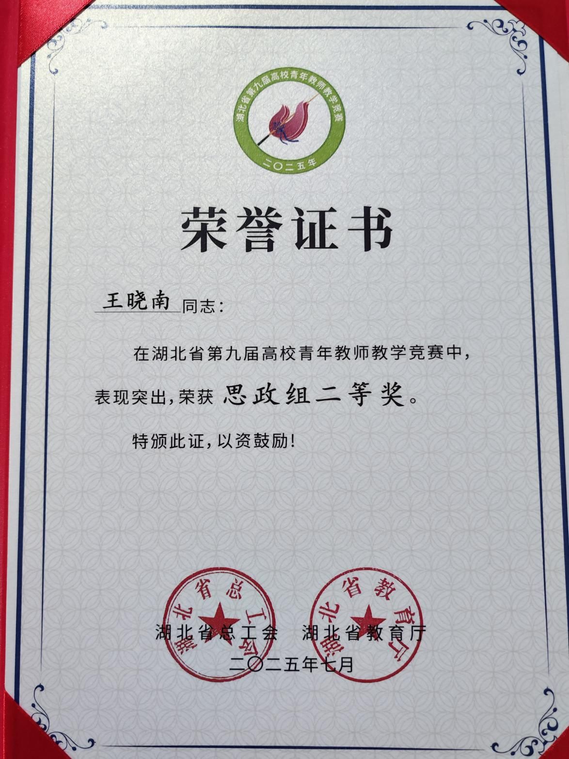 在本次竞赛中,bat365官网青年教师王晓南经过教学设计、教学展示、教学反思三个环节的比拼,表现优异,获得思政组二等奖第一名的佳绩。这是bat365官网教师在湖北省高校青年教师教学竞赛中取得的最好成绩,实现了历史性突破。