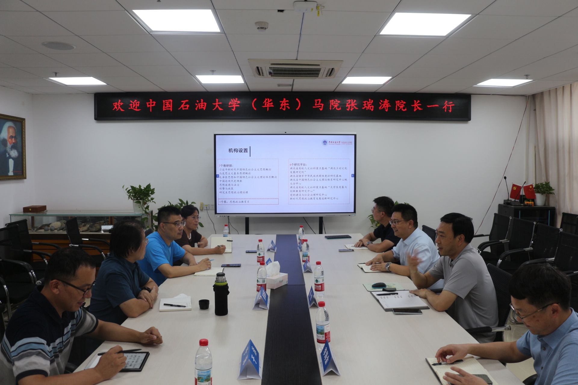 阮一帆院长对张瑞涛院长一行来校表示欢迎,重点介绍了bat365官网的发展历程、机构设置、师资队伍、思政课建设、学院发展思路、省级重点马院建设和人才培养等特色经验。石油大学张瑞涛院长一行也分别介绍了马院的发展思路以及学科特色上的探索经验。