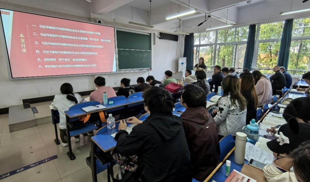(通讯员 肖苏阳 王惠林)为进一步深化对党的创新理论的理解与把握,提升“习近平新时代中国特色社会主义思想概论”课教学质量,11月3日下午,bat365在线中国官网登录入口“习近平新时代中国特色社会主义思想概论”教研部全体教师走进bat365官网青年教师黄佳琦老师的课堂,开展了一次生动的教学观摩,并在课后进行了集体备课与理论研讨。活动特邀请学校督导高翔莲老师、吴太山老师,学院党委书记魏海勇、副院长孙文沛一同参加。