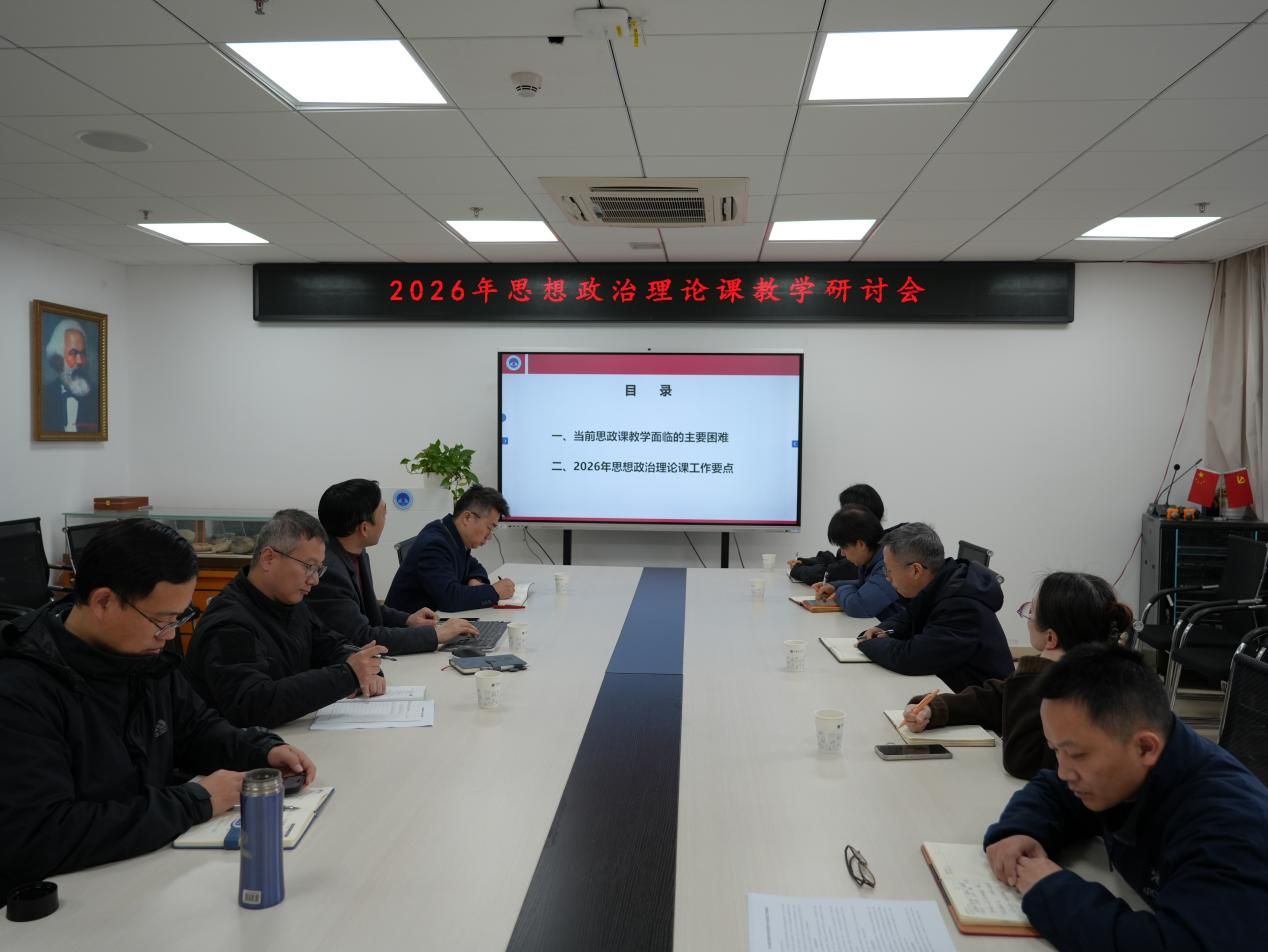 会上,院长阮一帆分析了学院在办学中经费保障、师资力量、教学质量、成果培育和协同育人等方面发展中存在的结构性矛盾。从建强课程、优化供给、数智赋能、深化课堂、评价机制汇报了2026年学院思想政治理论课的重点工作和思路。