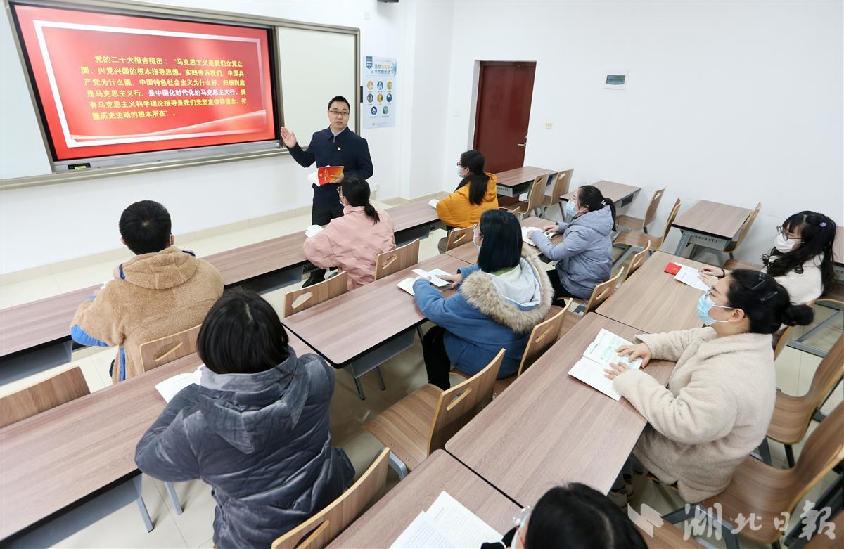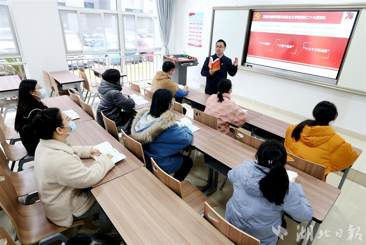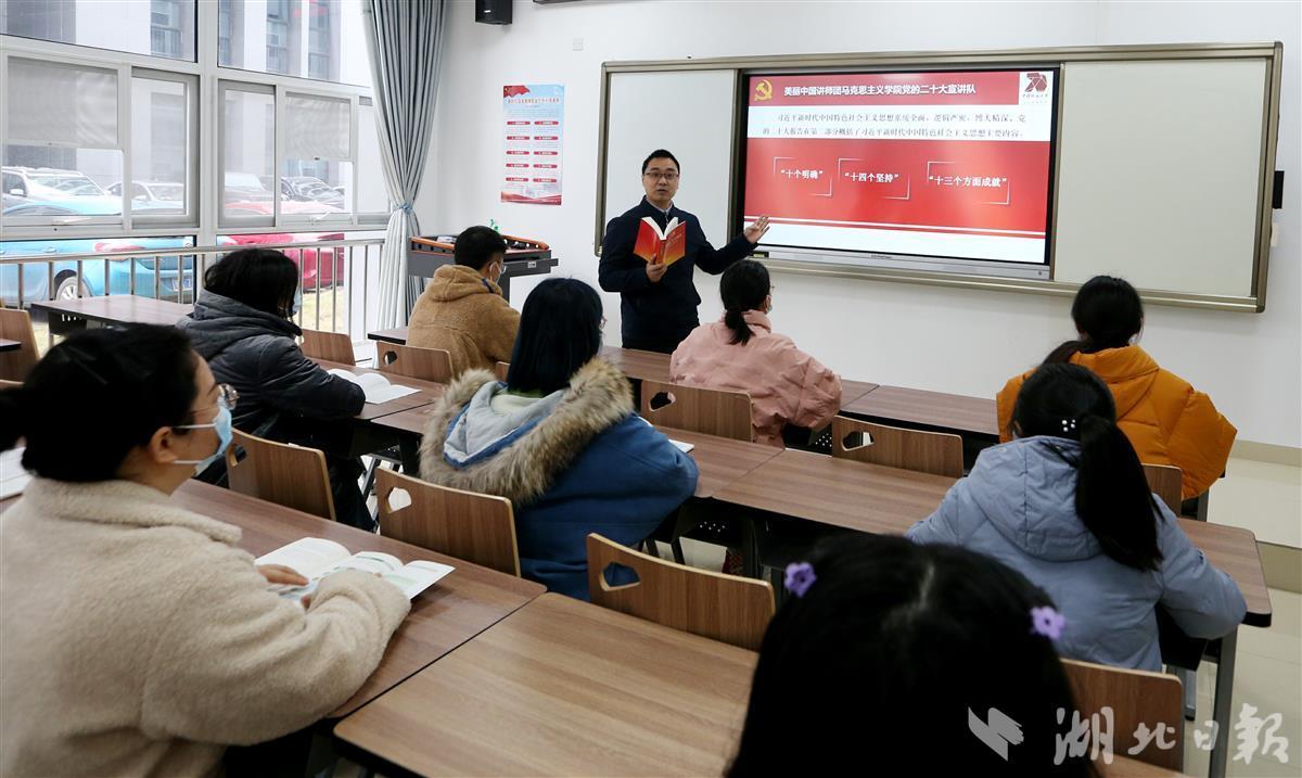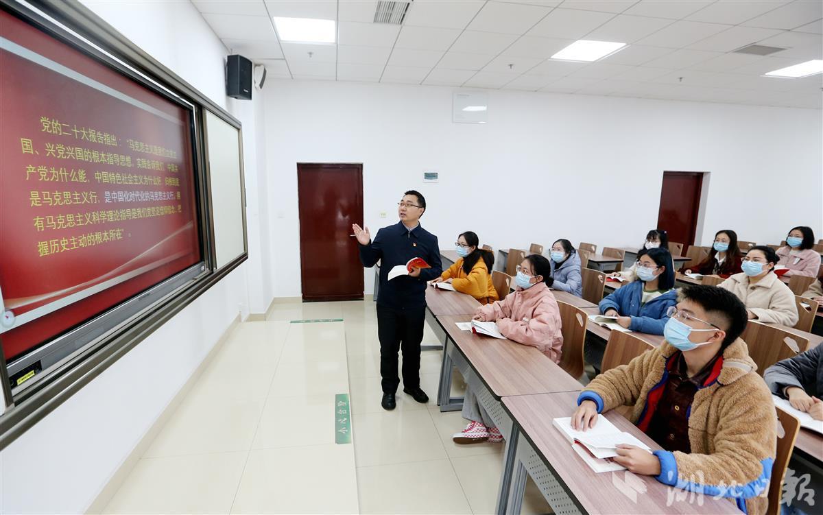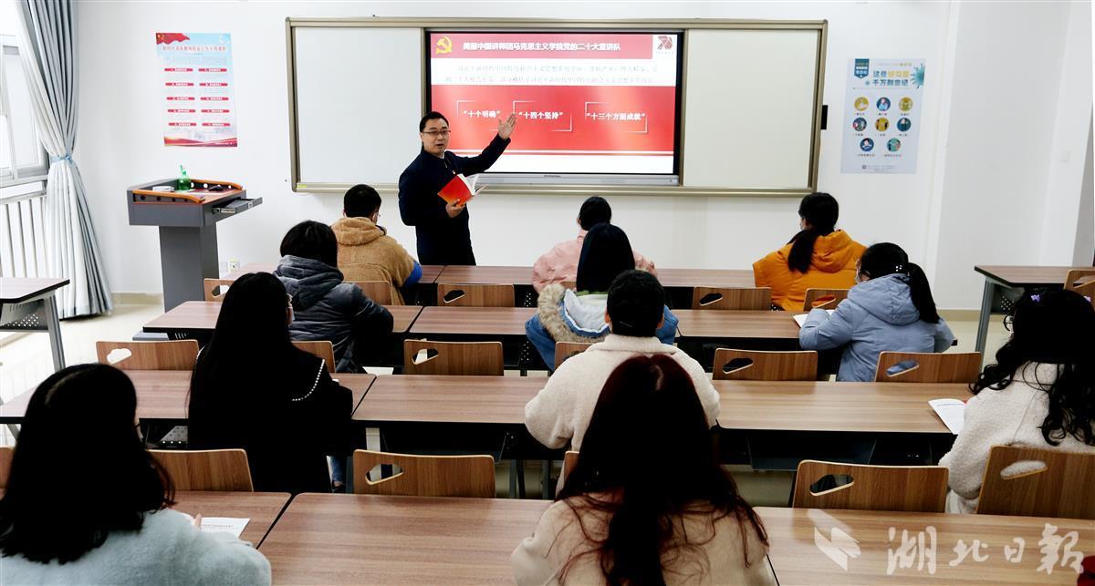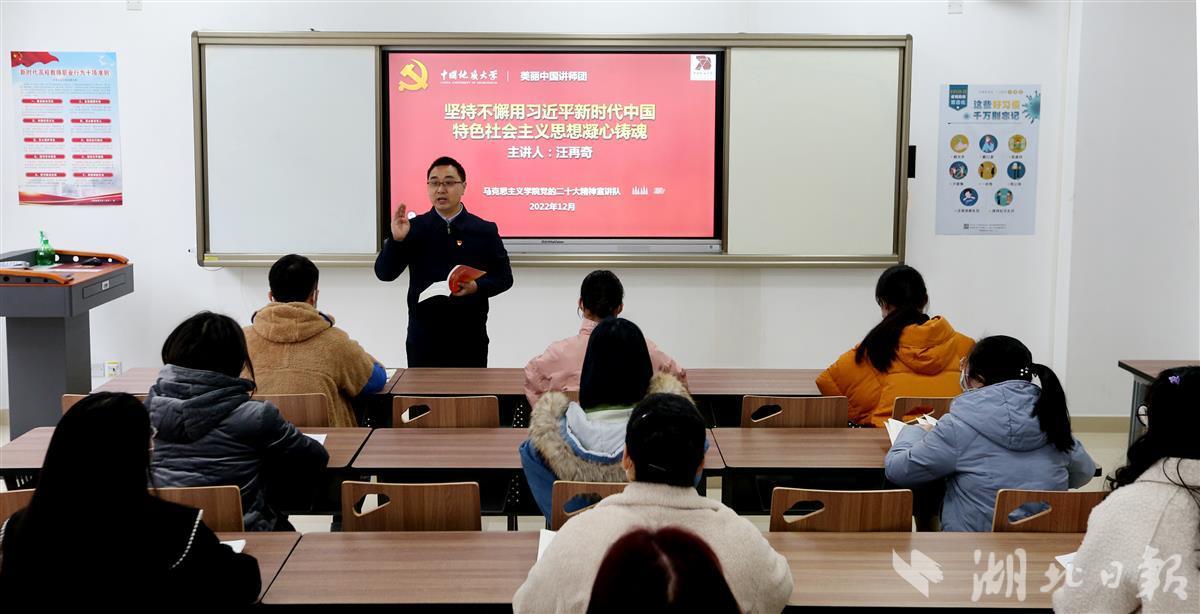 12月8日,bat365在线中国官网登录入口(武汉)bat365在线中国官网登录入口汪再奇副教授,用通俗易懂的语言在课堂为学生宣讲党的二十大精神,激励青年学子不忘初心跟党走,勇担重任立潮头,用知识报效祖国,建功新时代新征程,并与同学们互动交流分享学习体会。